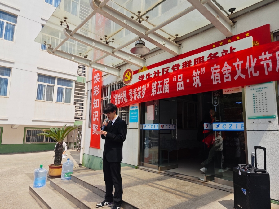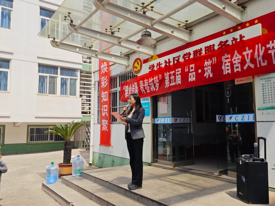 2024年4月2日,建工学院于宿舍区4号楼前举办“雅舍传馨,青春筑梦” 第五届 “品・筑” 宿舍文化节启动仪式,Beat365官方网站党总支副书记张爱芳、副院长徐小明、团委书记周丽娟、23、24级班主任和各班生活委员、治保员参加此次活动。