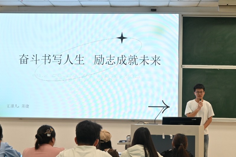 随后,造价2311班朱思怡和建工2323班陈捷两位国家励志奖学金获得者依次做分享。他们结合自身成长历程,生动讲述了从入学时的迷茫困惑,到如何在学业上攻坚克难、在生活里以积极乐观的态度直面困难,最终成功获得国家励志奖学金奖学金的故事。朱思怡分享了自己如何在繁重的课程学习中合理规划时间,积极参与专业竞赛,以优异的成绩赢得认可;陈捷则着重讲述了自己在社团活动及社会实践中锻炼综合能力的经历,凭借全面发展的综合素质在众多同学中脱颖而出。他们的分享不仅是个人奋斗历程的呈现,更似一盏盏希望之灯,为在场同学照亮前行之路,激励着大家在学业与生活的道路上奋勇向前。