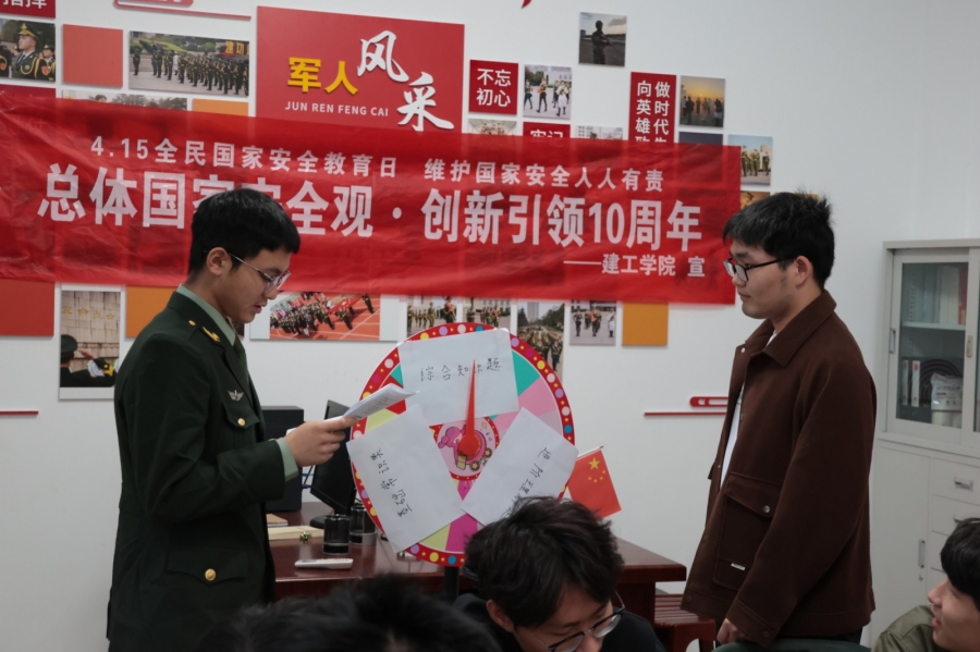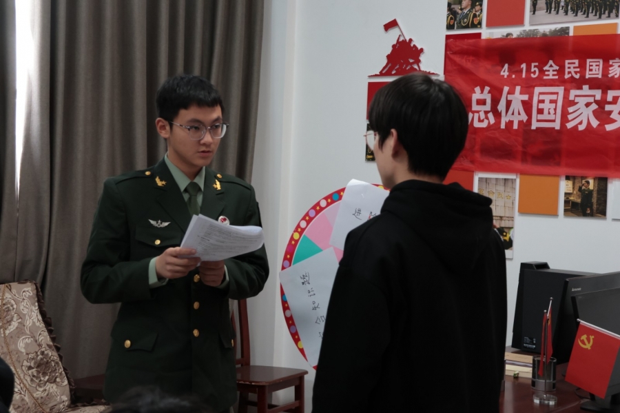 4月15日中午,Beat365官方网站在学生社区 5 号楼一楼征兵工作室举办了国家安全知识问答活动。同学们认真思考、踊跃答题,在轻松愉快的氛围中巩固了国家安全知识。此次知识问答活动不仅激发了同学们学习国家安全知识的热情,还进一步加深了大家对国家安全知识的理解和记忆。