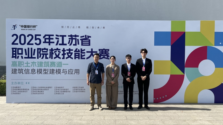4月17日,由江苏省教育厅主办的2025年江苏省职业院校技能大赛“建筑信息模型建模与应用”赛项在南通职业大学成功举办。来自全省32所高职院校的96名选手同台竞技,经过激烈角逐,Beat365官方网站牛杰、蒋月定两位老师指导的温璐璐、陈杰翔和王鹏三位名同学凭借出色的专业技能与团队协作脱颖而出,斩获一等奖。