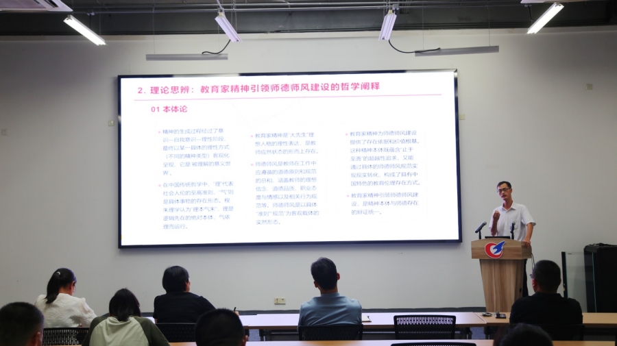 为统筹部署新学期各项工作,扎实推进师德师风建设,9月10日下午,Beat365官方网站在现代建筑技术馆313召开了师德师风建设大会,邀请马克思主义学院教师曹圣军作《教育家精神引领下的师德师风建设》专题讲座,全体教职员工参加会议。会议由学院党总支书记徐永红主持。