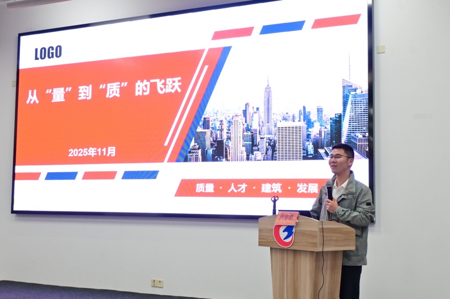 卢宇浩校友以“从‘量’到‘质’的飞跃”为主题,结合自身7年行业深耕经历,从个人成长、大学经验、行业现状与未来趋势四个维度展开分享。他回顾了自己从常州工程职业技术学院工程监理专业毕业,逐步成长为助理工程师、项目现场主管的职业历程,详细介绍了参建中吴大道十四标、塘角大桥等市优项目的实践经验。