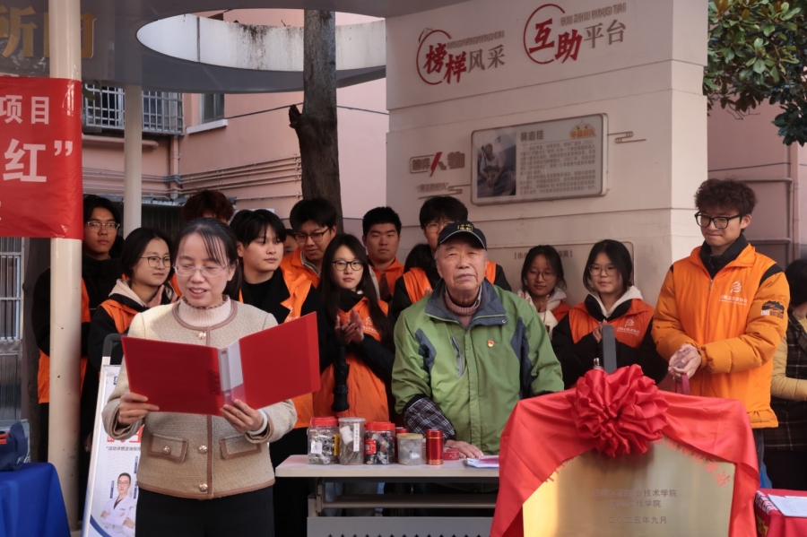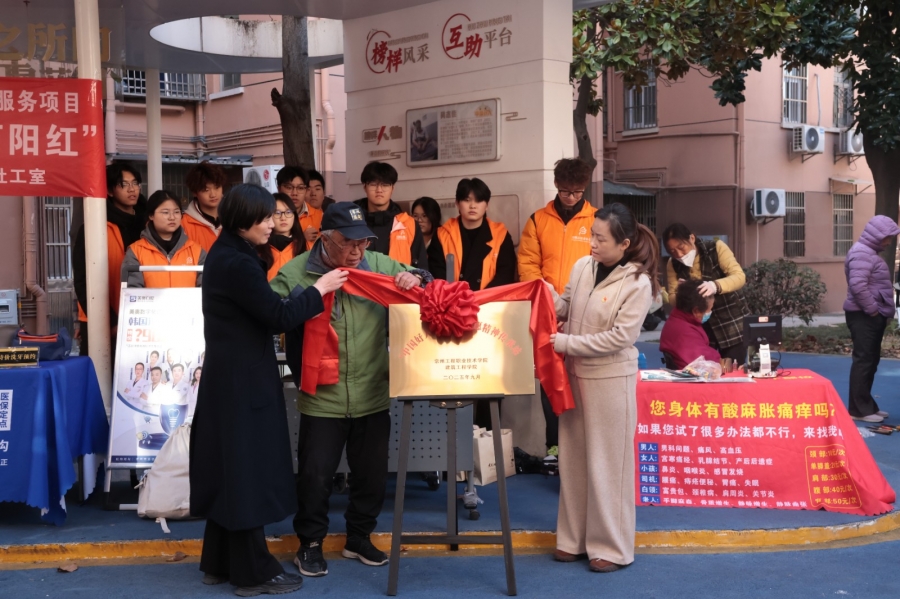 为深入学习身边榜样,推动志愿服务常态化开展,11月26日上午,由Beat365官方网站与常州西直街社区联合打造的“中国好人吴志佳志愿精神传承站”挂牌仪式在西直街社区“连心亭”隆重举行。“中国好人”吴志佳、西直街社区党委书记沈丹、Beat365官方网站党总支书记徐永红、副书记张爱芳及师生志愿者代表、社区居民参加活动,共同见证校社共建志愿新阵地的诞生。