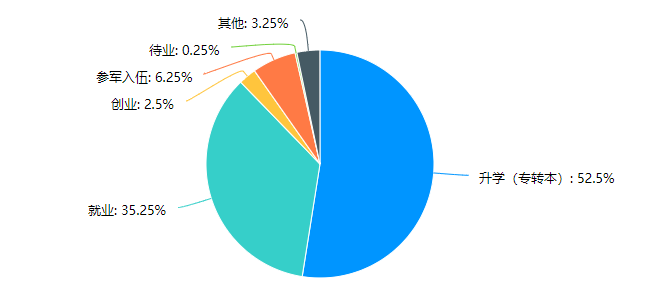 调查结果表明,99.75%的学生拥有明确的职业选择,其中52.5%的学生决定继续深造,35.25%的学生选择直接就业,6.25%选择加入军队,2.5%打算创业,只有一名学生选择暂时不工作(见图1)。超过一半的学生希望进一步学习,以提高其学历水平。该结果为常州地区高校人才培养指明了方向,学校需加强学生技能锻炼,同时也要重视文化素质培养,认真传达升学相关政策精神,鼓励学生参加专转本、专接本等学习与考试,这既有助于学生进入更高层次的学习平台,还可助力学校实现高质量就业。